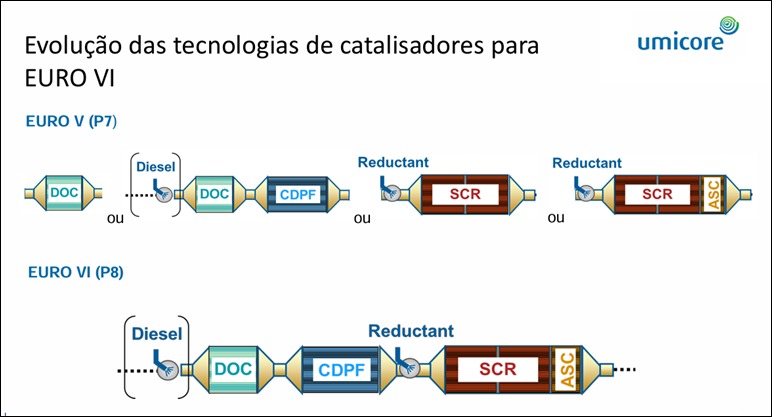 De acordo com a Umicore, empresa com forte atuação neste segmento, todos os conversores catalíticos para caminhões até a implementação da Euro VI foram combinados em uma única solução. O produto atual conta com diferentes tipos de composição de metais nobres para atender corretamente cada especificidade desenvolvida pelas fabricantes automotivas.