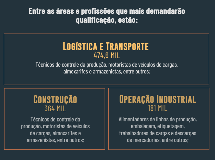 Segundo o Mapa do Trabalho Industrial, o país precisará de 2,2 milhões de trabalhadores com uma nova formação para atender o ritmo de criação de empregos e a reposição de trabalhadores que deixarão o mercado de trabalho formal. Entre 2025 e 2027, as áreas com maior demanda por novos profissionais serão: