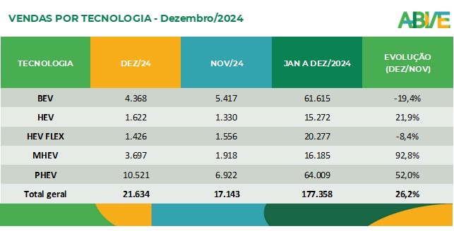 Ainda assim, excluindo-se esses micro-híbridos, o total de 2024 superou todas as previsões da ABVE, com 173.530 emplacamentos (+ 85% sobre 2023), e dezembro bateu um novo recorde mensal desde o início da série histórica, com 18.942 unidades vendidas.