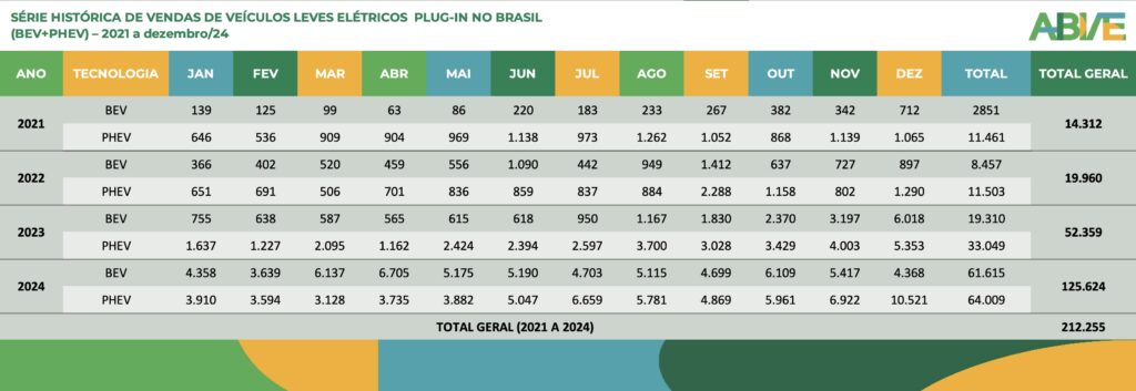 Na comparação com 2023, quando foram vendidos 52.359 veículos elétricos plug-in, houve um grande crescimento de 140%.
