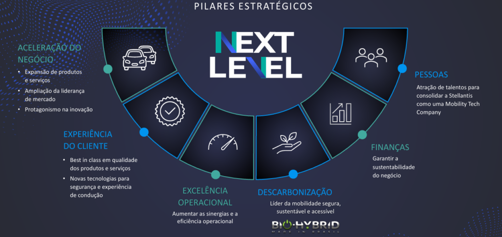 O plano estratégico da Stellantis está dividido em seis pilares estratégicos: