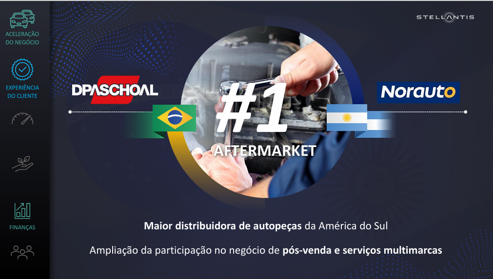 Considerando todas as operações do grupo somadas à ampla rede de concessionárias das marcas integrantes, a Stellantis já se declara hoje a maior distribuidora de autopeças do Brasil. “Hoje somos a maior distribuidora no Brasil e na Argentina e isso contribui na sustentabilidade financeira da empresa”, disse Cappellano aos jornalistas.